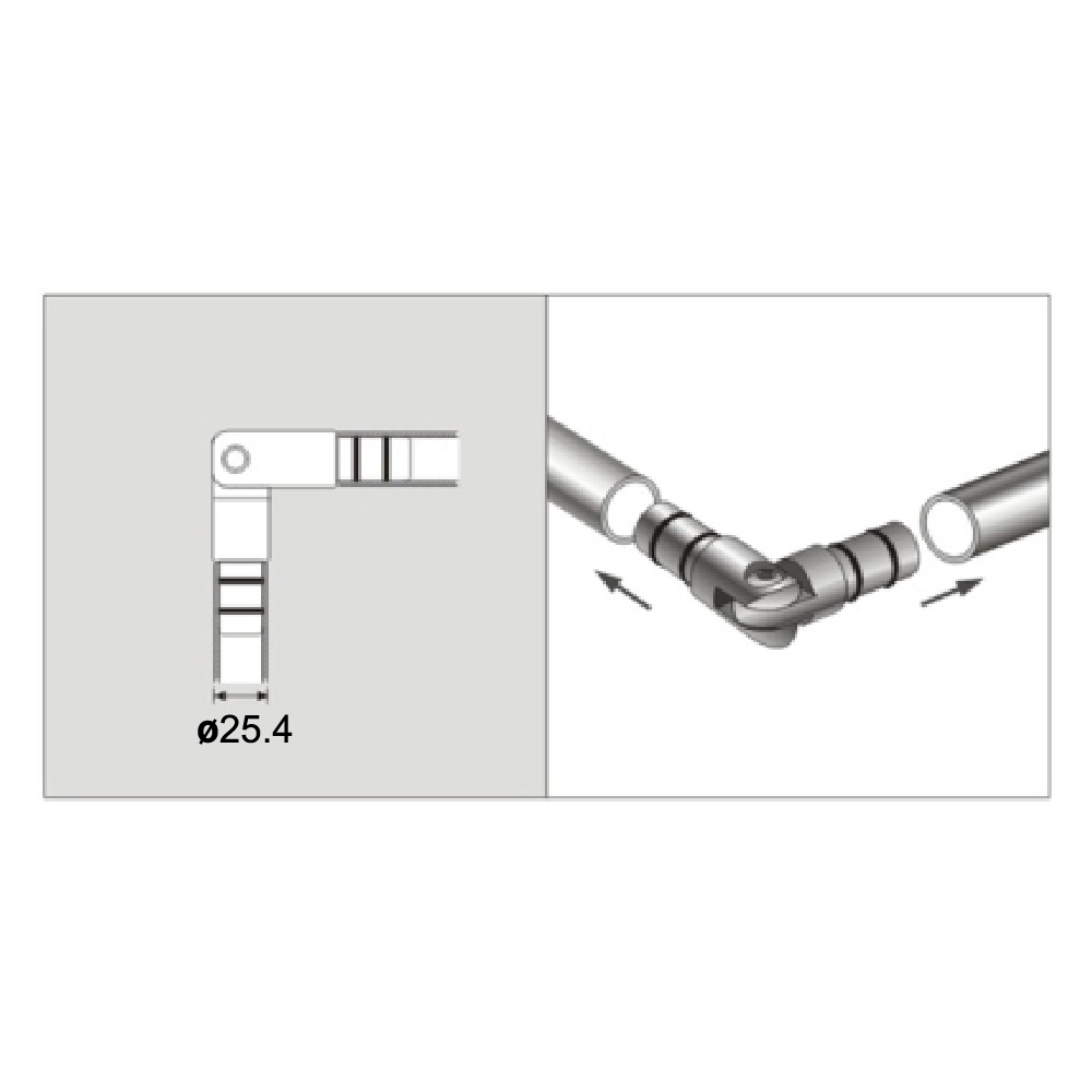 Conector de tubo Ø25.4mm en ángulo,