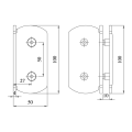 La moderna serie de la serie Bellagio es diferente a cualquier otra bisagra. Las líneas de precisión ayudan a dar forma al diseño único de esta bisagra para el vidrio de 5/16 «a 3/8» (8 mm a 10 mm). Todos los sujetadores están ocultos. La bisagra tiene una posición de cierre ajustable a la que se accede cuando se cuelga la puerta. Las bisagras son egoístas dentro de los 25 ° de la posición cerrada. Usando dos bisagras, se puede lograr un ancho de puerta máximo de 39 «(1 m) y un peso máximo de 110 lb (50 kg).