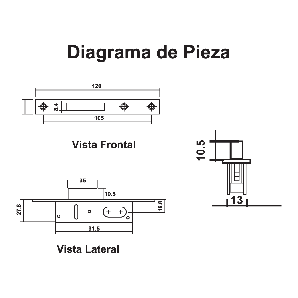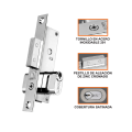Cerradura de embutir de pico recto para puerta de aluminio.