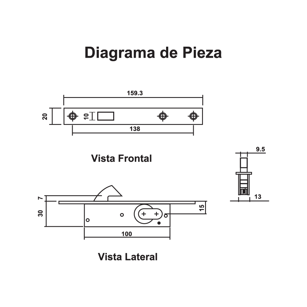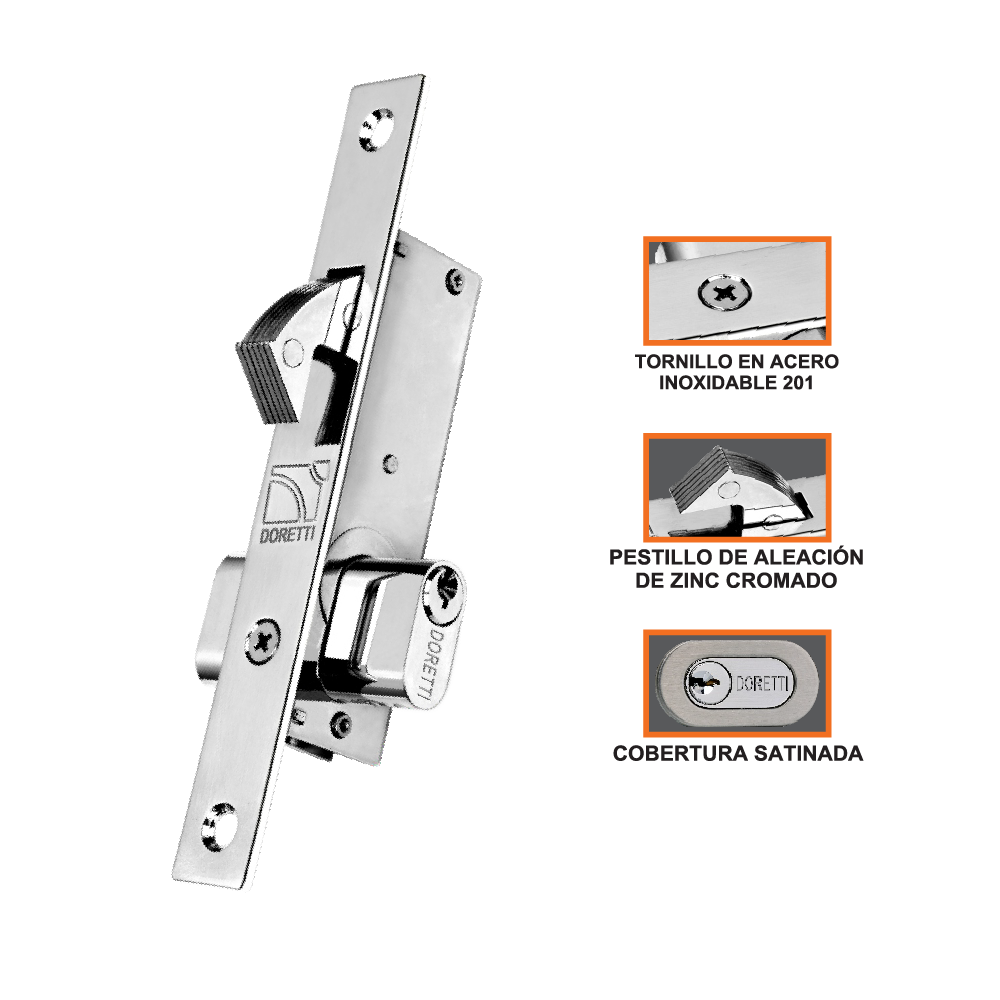 Cerradura de embutir de pico loro para puerta corrediza de aluminio.