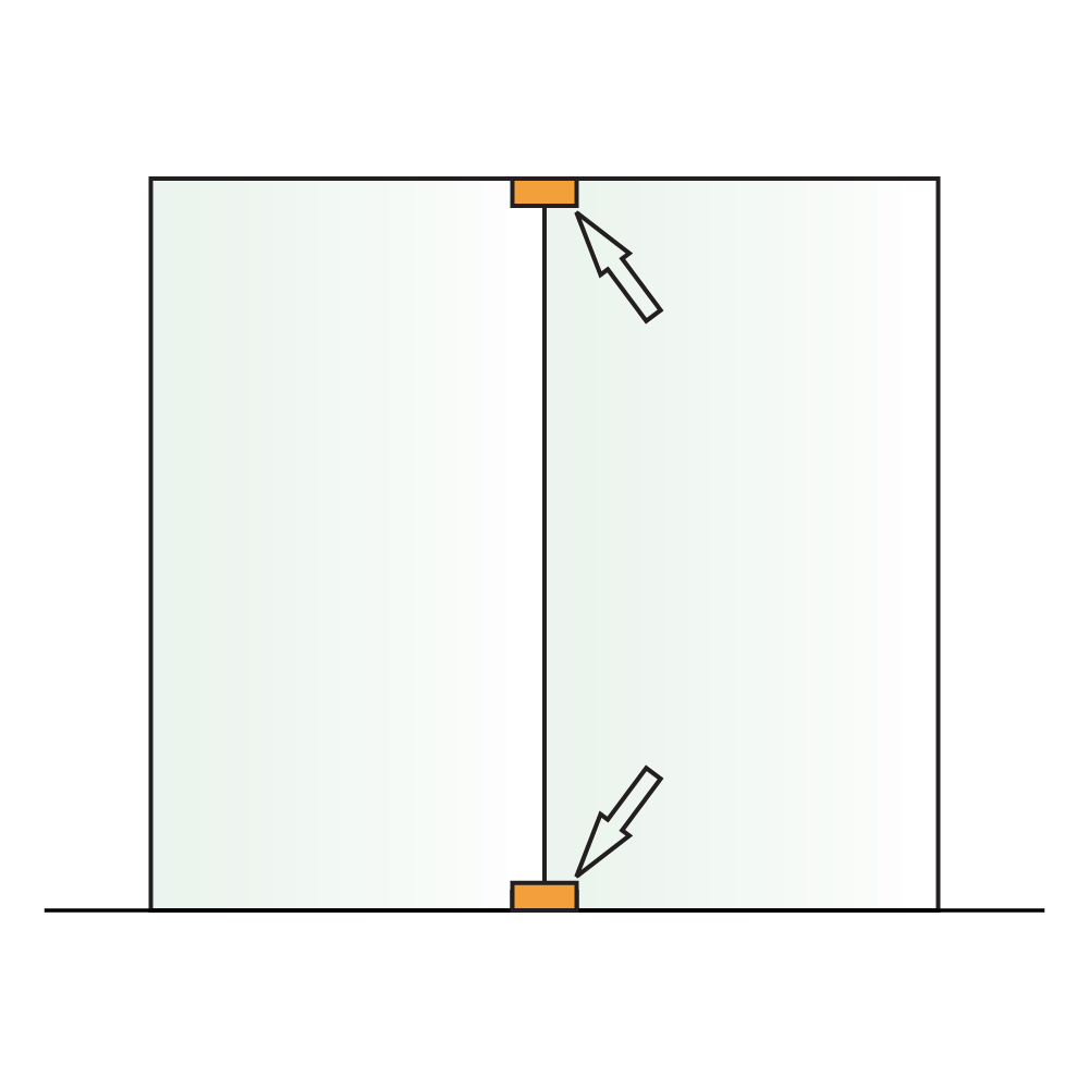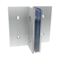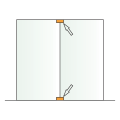 Unión de dos cristales con fijación doble al piso, techo y muro.