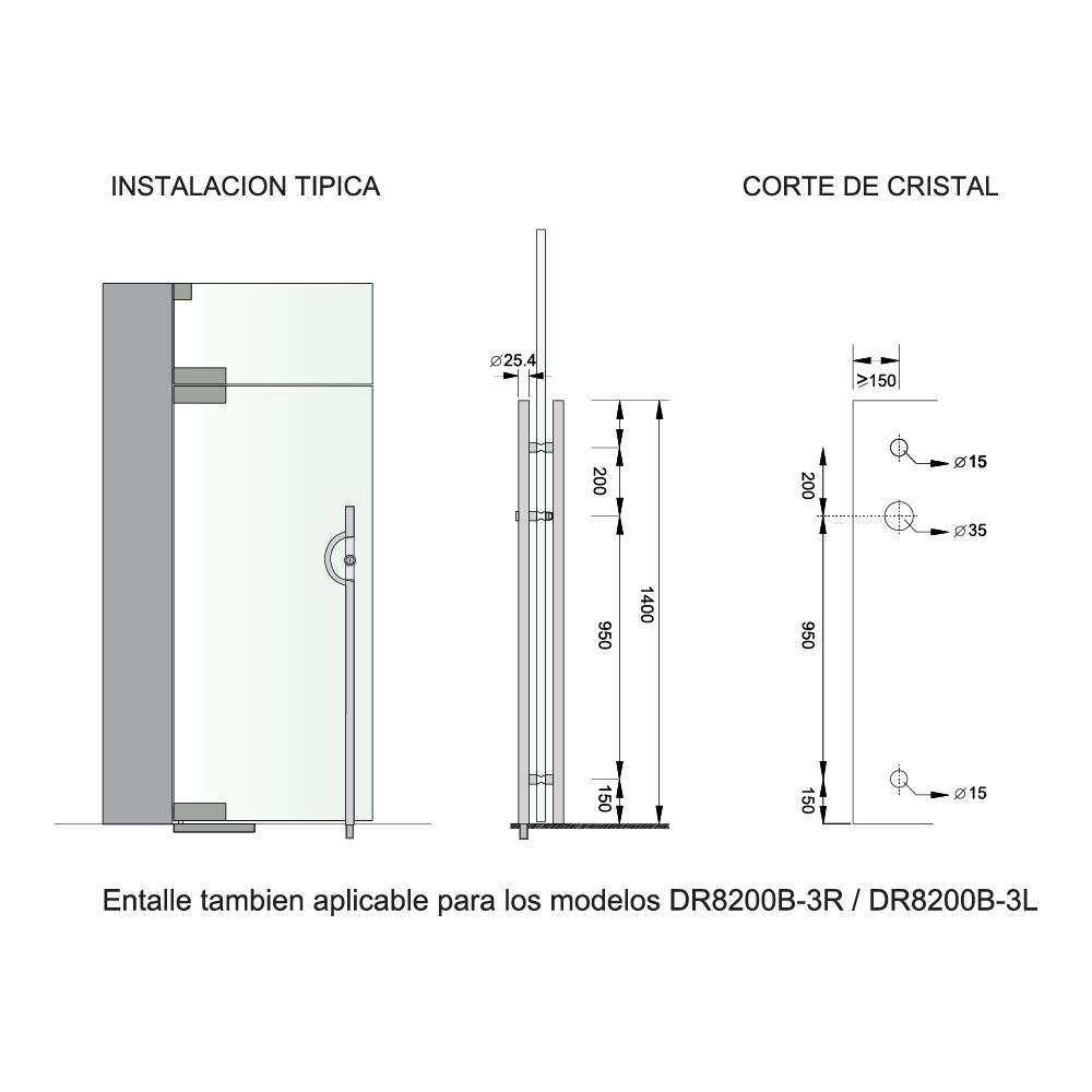 • Funciona con vidrio de 5/16 «a 3/8» (8 mm a 10 mm)