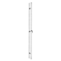 La moderna serie de la serie Bellagio es diferente a cualquier otra bisagra. Las líneas de precisión ayudan a dar forma al diseño único de esta bisagra para el vidrio de 5/16 «a 3/8» (8 mm a 10 mm). Todos los sujetadores están ocultos. La bisagra tiene una posición de cierre ajustable a la que se accede cuando se cuelga la puerta. Las bisagras son egoístas dentro de los 25 ° de la posición cerrada. Usando dos bisagras, se puede lograr un ancho de puerta máximo de 39 «(1 m) y un peso máximo de 110 lb (50 kg).